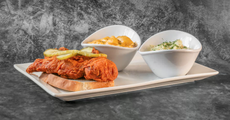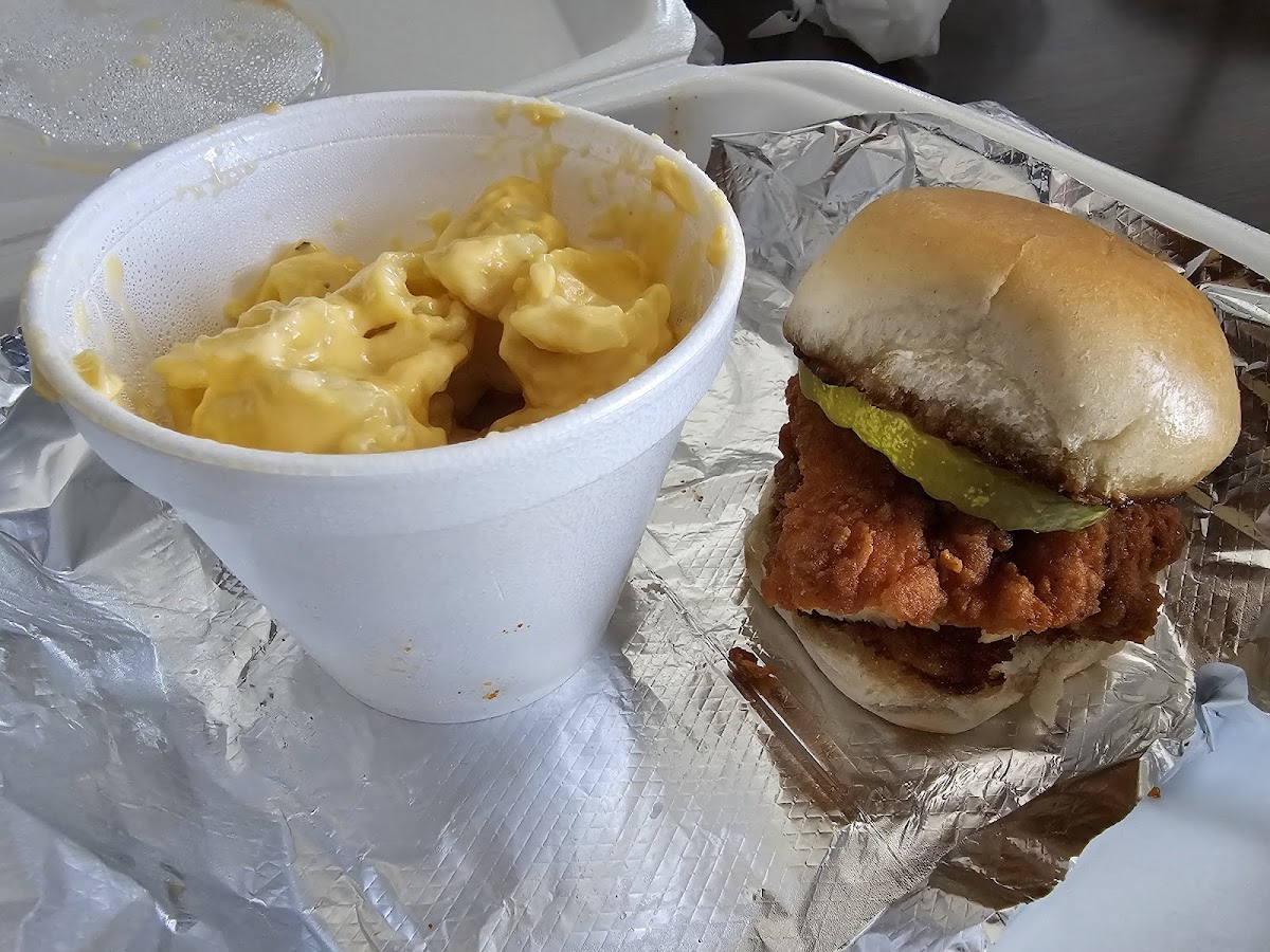 I got takeout via DoorDash, picked it up myself. The restaurant/bar is super cute, tucked away behind the main street businesses. With a name that includes "lake", it seems odd that it's not ON the lake, but My food was done on time (I scheduled it) and nice and hot even once I got back to my hotel 15 minutes later. I got the Nashville hot sliders, they are a good size and taste great! For reference, their medium is equal to Thai level 1, haha. I will definitely try "hot" next time. But they taste great! I got macaroni and cheese as my side, and an extra side of Brussels sprouts with bacon. I was a little leery of both - neither look particularly special in takeout containers. But, they taste great! (For the record, I ate one slider before I thought to take pictures!) For the price, speed, and quality, I'll certainly go back. Maybe next time I will have the time to dine in! Their bar looked nice and comfy!